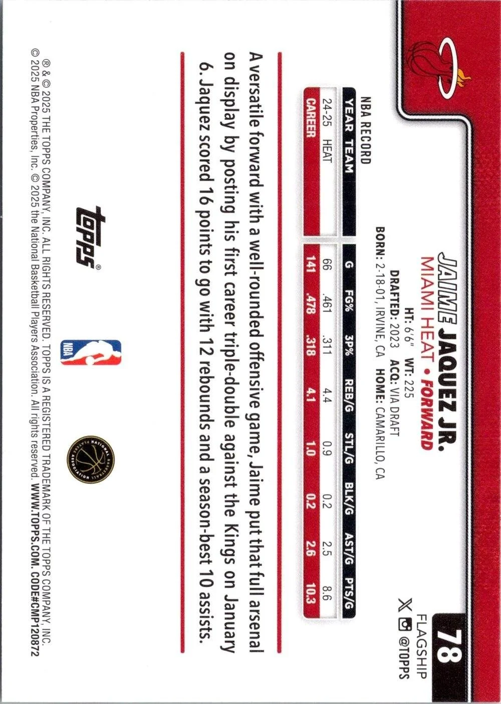 This is a nice example of a 2025-26 Topps #78 Jaime Jaquez Jr.