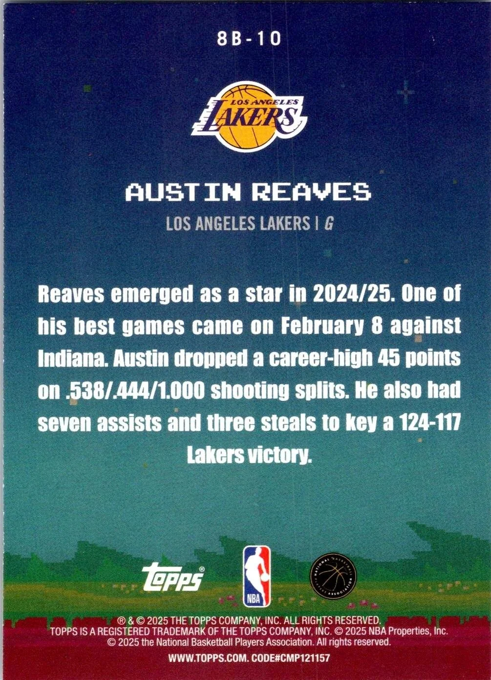 This is a nice example of a 2025-26 Topps #8B-10 Austin Reaves 8-Bit Ballers