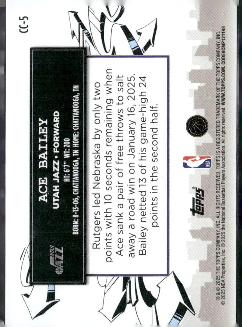 This is a nice example of a 2025-26 Topps #CC-5 Ace Bailey Clutch City Prospects