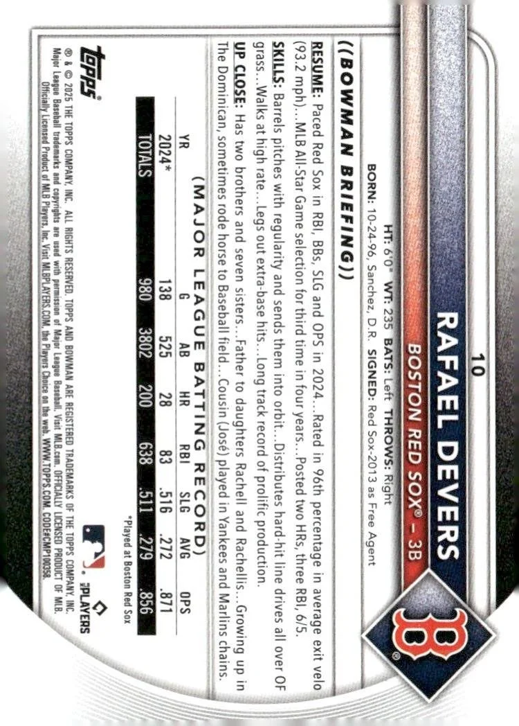 This is a nice example of a 2025 Bowman #10 Rafael Devers