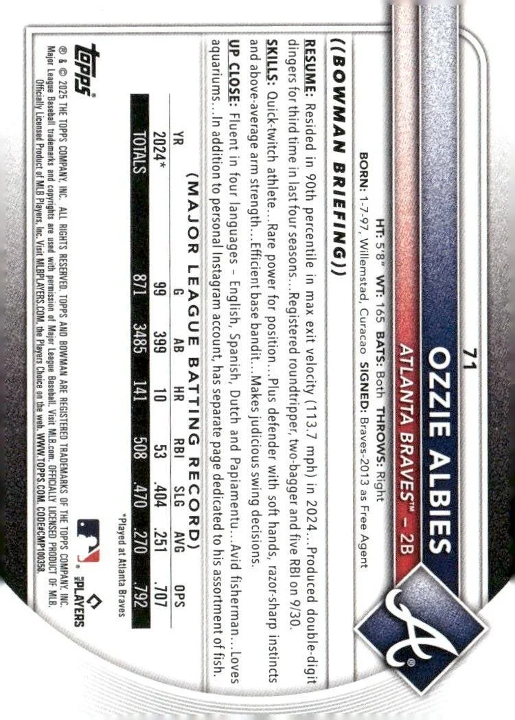 This is a nice example of a 2025 Bowman #71 Ozzie Albies
