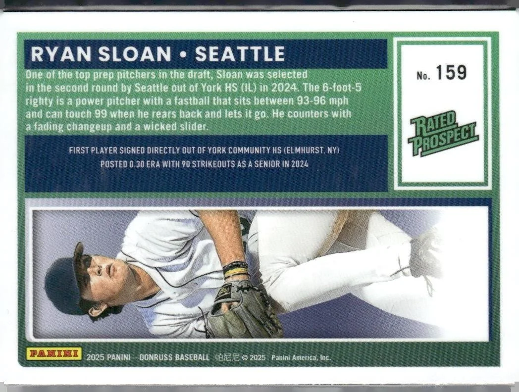 This is a nice example of a 2025 Donruss #159 Ryan Sloan