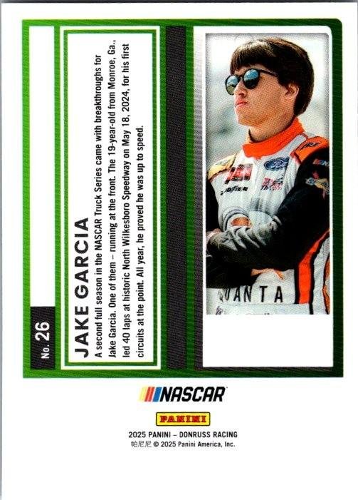 This is a nice example of a 2025 Donruss #26 Jake Garcia