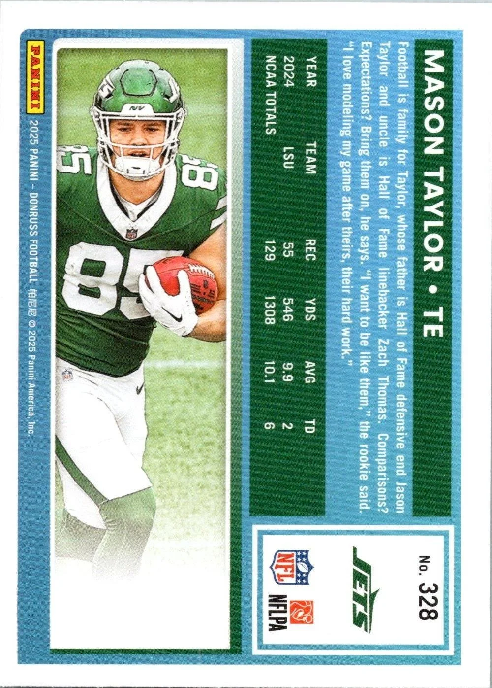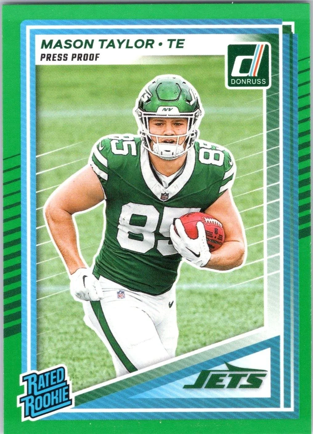 This is a nice example of a 2025 Donruss #328 Mason Taylor Press Proofs Green