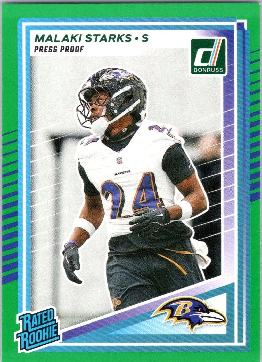 This is a nice example of a 2025 Donruss #346 Malaki Starks Press Proofs Green