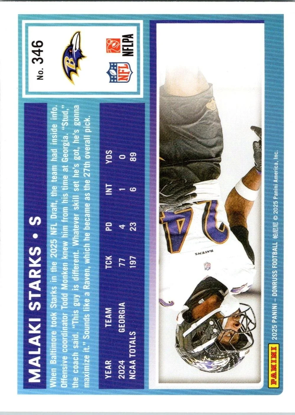 In 2025 Malaki Starks played for the Baltimore Ravens.