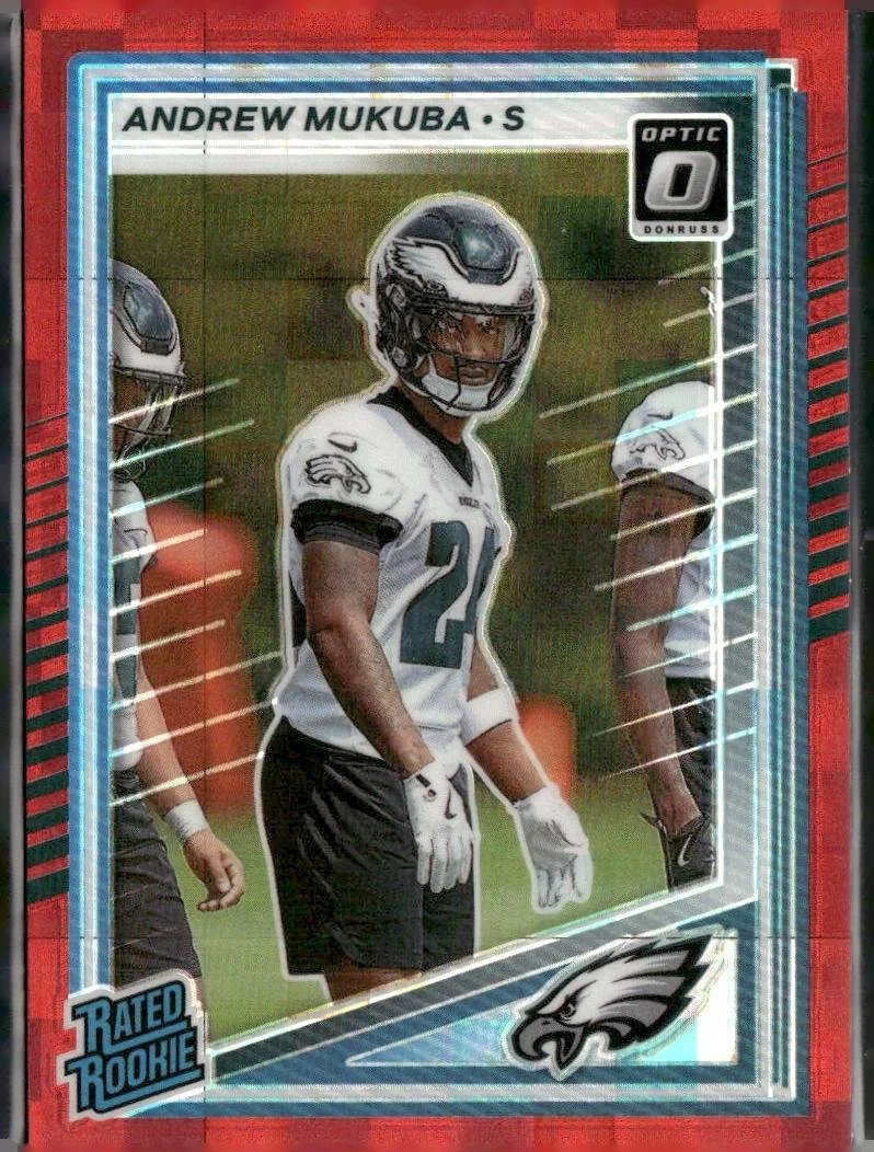 This is a nice example of a 2025 Donruss #380 Andrew Mukuba Optic Rated Rookies Preview Red Pandora