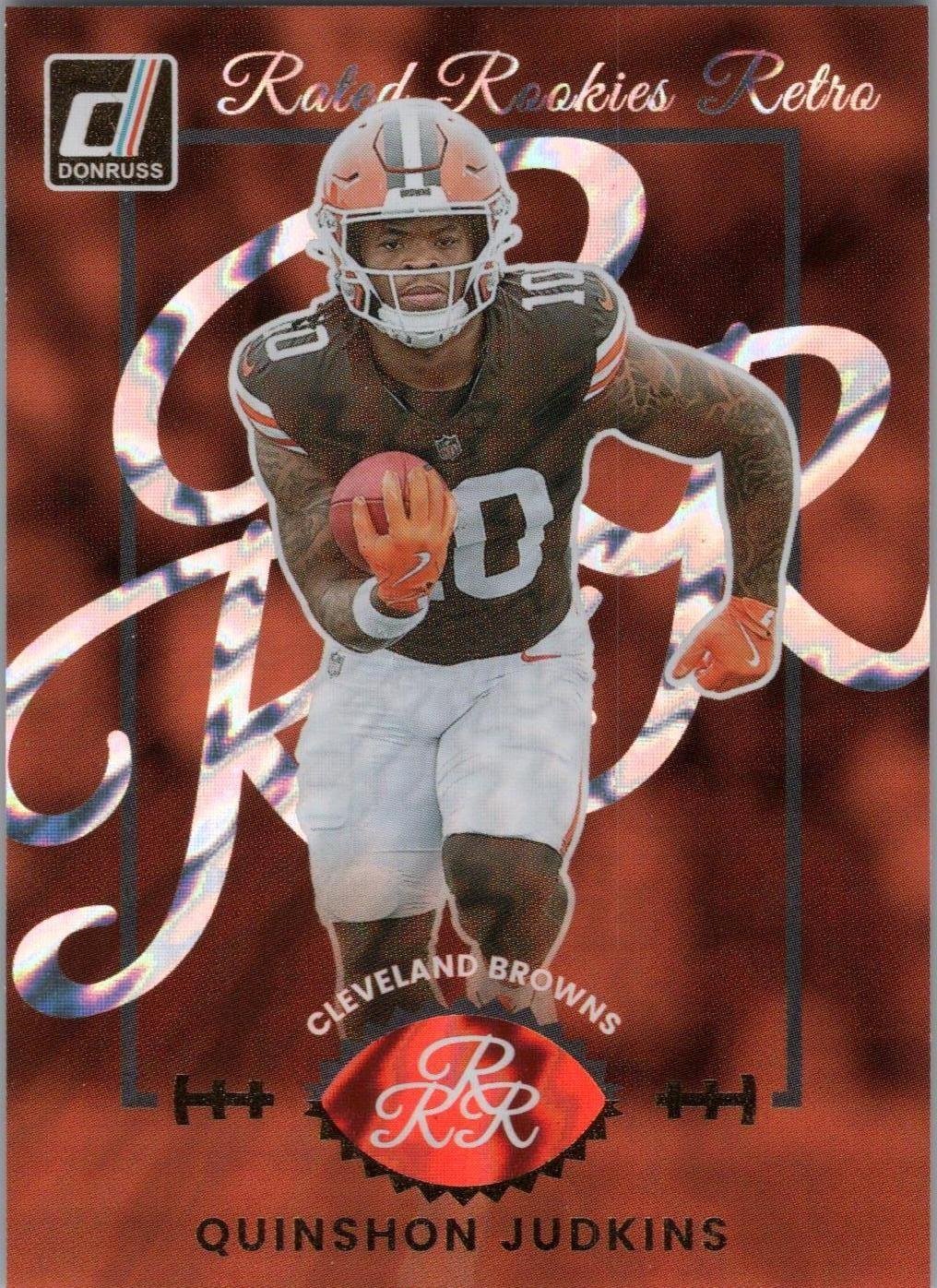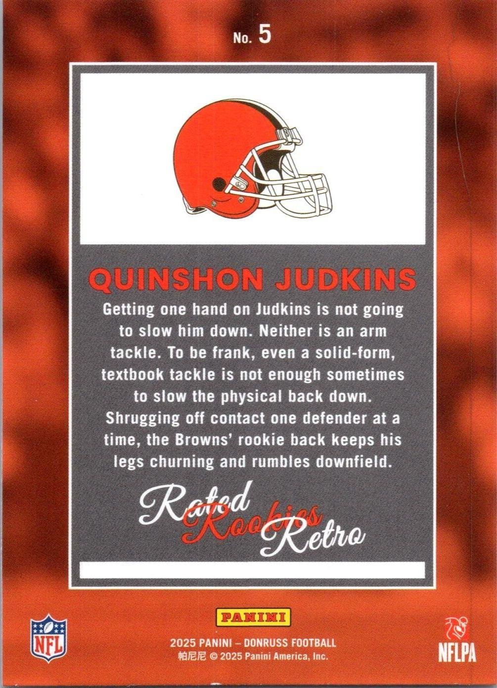 This is a nice example of a 2025 Donruss #5 Quinshon Judkins Rated Rookies Retro