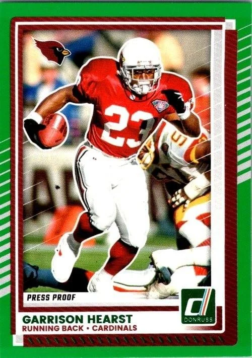 This is a nice example of a 2025 Donruss #66 Garrison Hearst Press Proofs Green