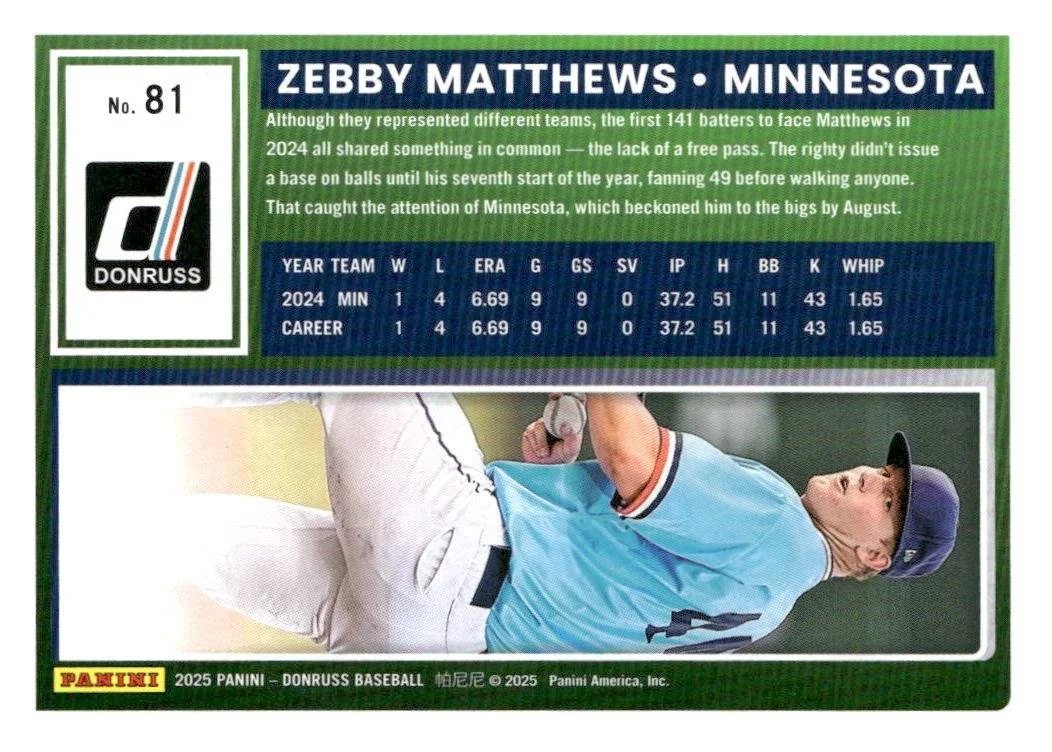 This is a nice example of a 2025 Donruss #81 Zebby Matthews