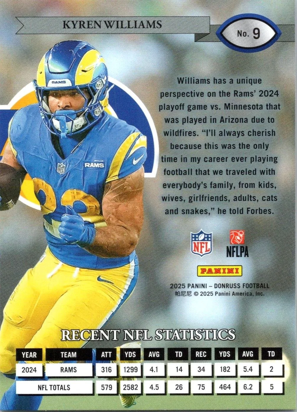 This is a nice example of a 2025 Donruss #9 Kyren Williams Retro 1995
