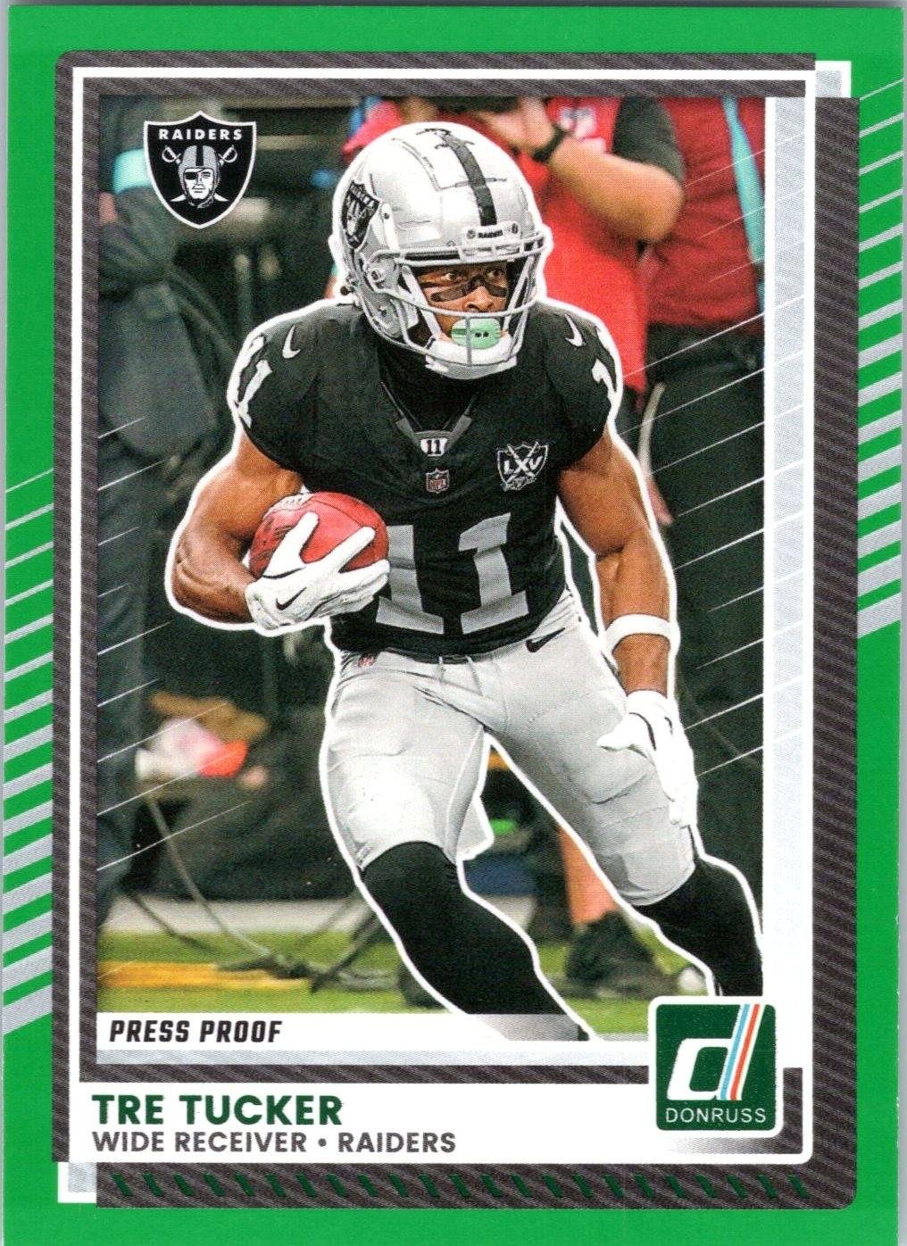 This is a nice example of a 2025 Donruss #90 Tre Tucker Press Proofs Green