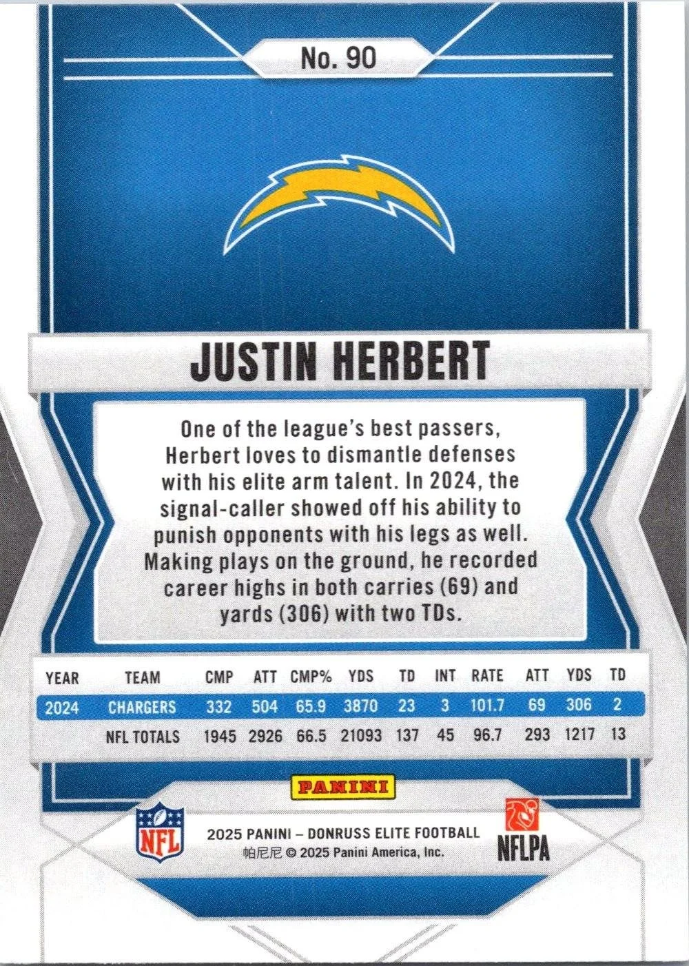 This is a nice example of a 2025 Donruss Elite #90 Justin Herbert