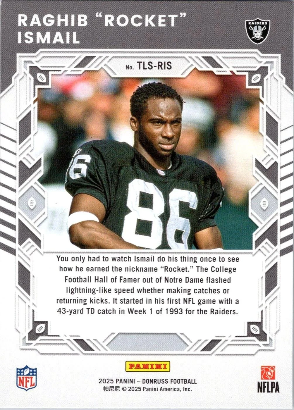 This is a nice example of a 2025 Donruss #TLS-RIS Raghib Ismail The Legend Series