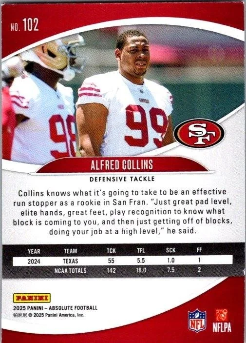 This is a nice example of a 2025 Panini Absolute #102 Alfred Collins Retail