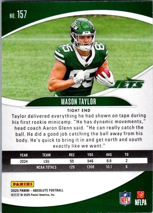 This is a nice example of a 2025 Panini Absolute #157 Mason Taylor Retail
