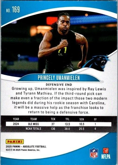 This is a nice example of a 2025 Panini Absolute #169 Princely Umanmielen Retail