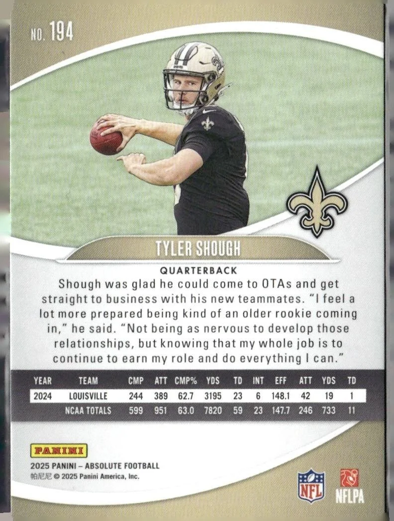 This is a nice example of a 2025 Panini Absolute #194 Tyler Shough Retail