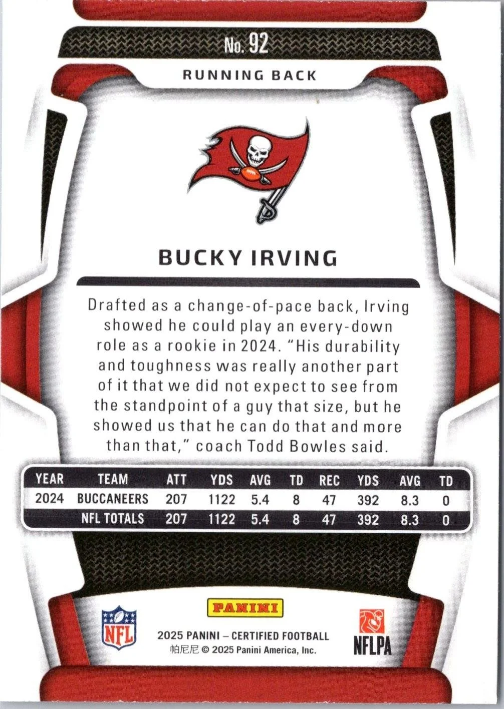This is a nice example of a 2025 Panini Certified #92 Bucky Irving