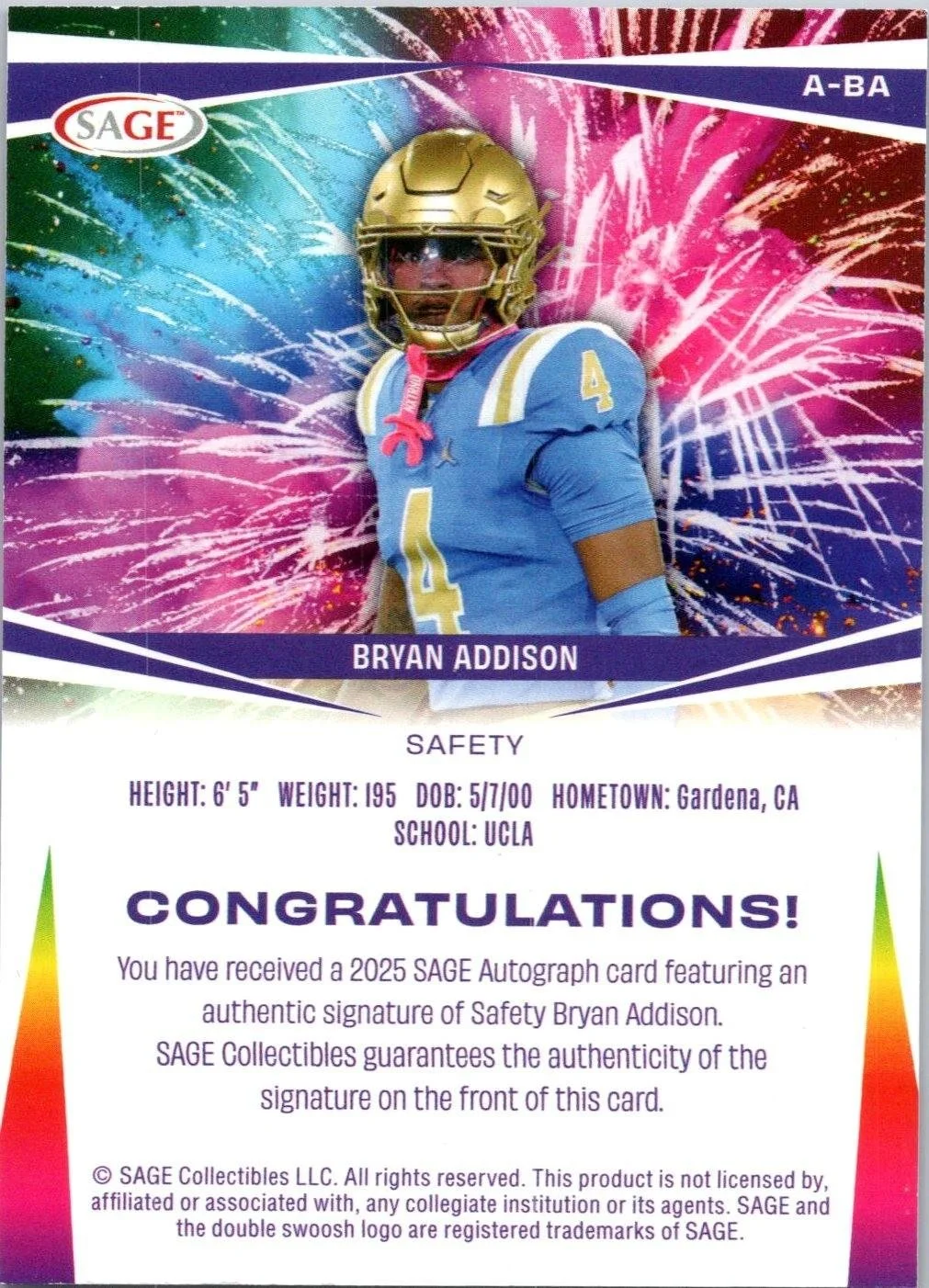 In 2025 Bryan Addison played for the UCLA Bruins.