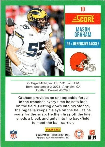 This is a nice example of a 2025 Score #10 Mason Graham Anniversary Rookies