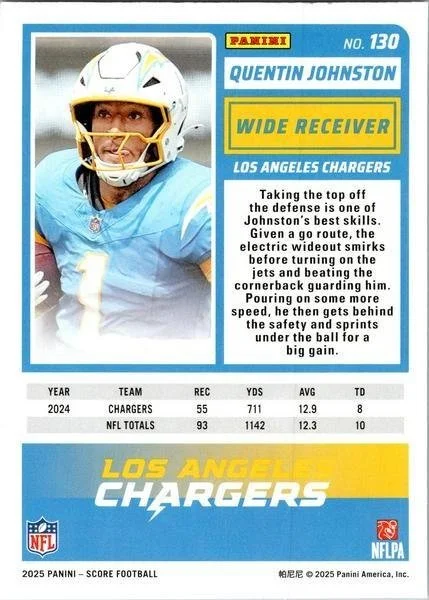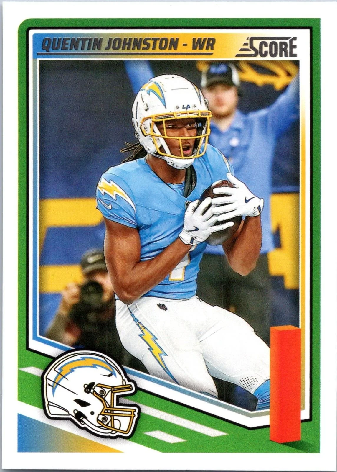This is a nice example of a 2025 Score #130 Quentin Johnston Scorecard