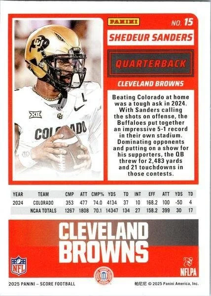 This is a nice example of a 2025 Score #15 Shedeur Sanders