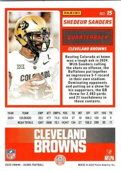 This is a nice example of a 2025 Score #15 Shedeur Sanders
