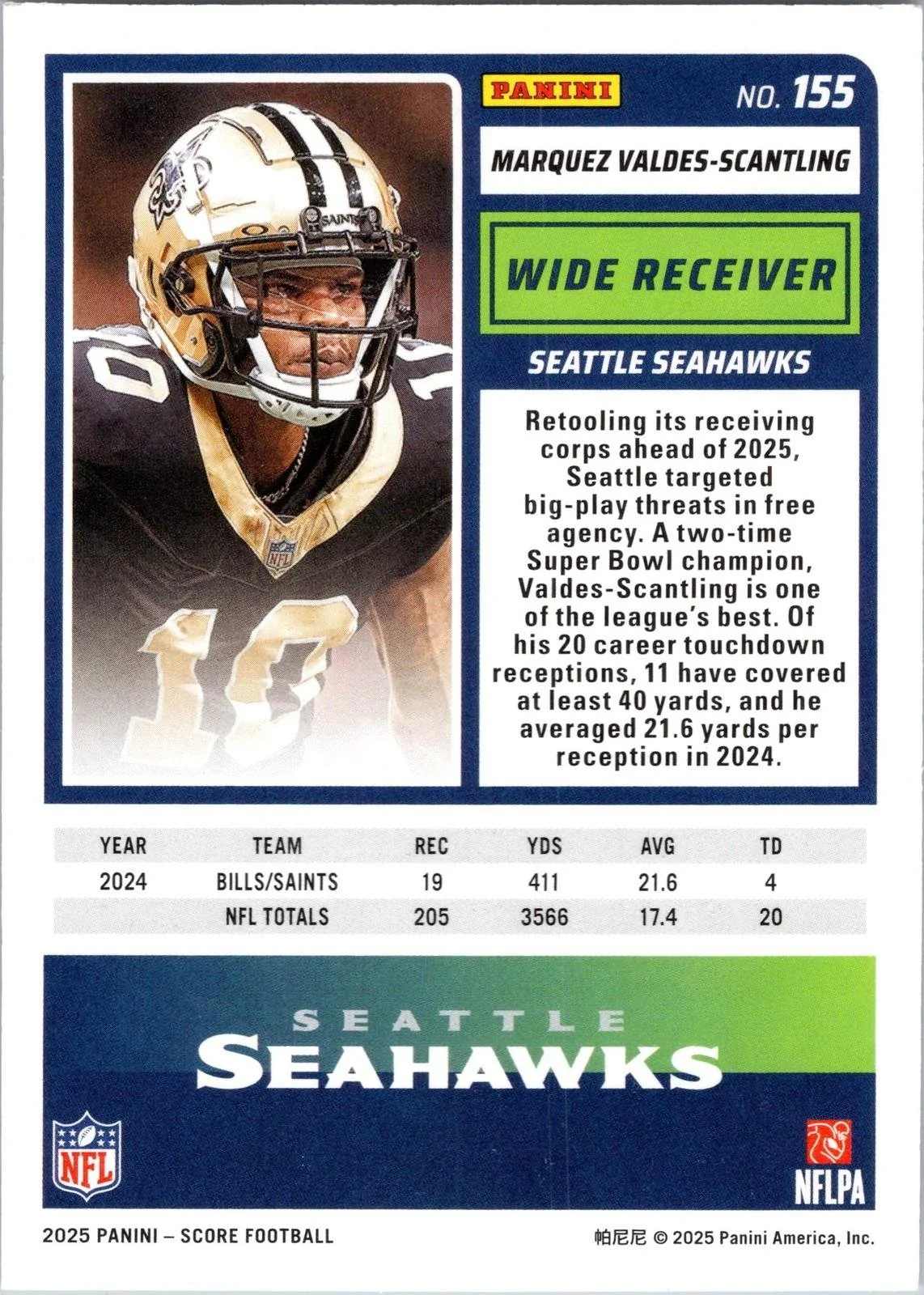 This is a nice example of a 2025 Score #155 Marquez Valdes-Scantling