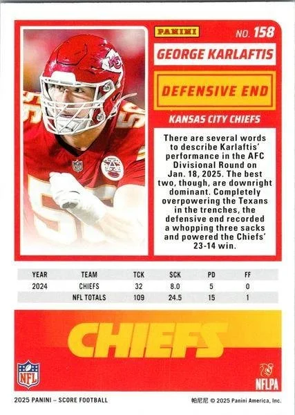 This is a nice example of a 2025 Score #158 George Karlaftis