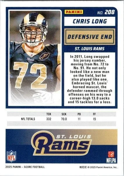 This is a nice example of a 2025 Score #208 Chris Long Scorecard