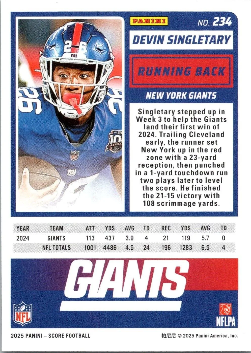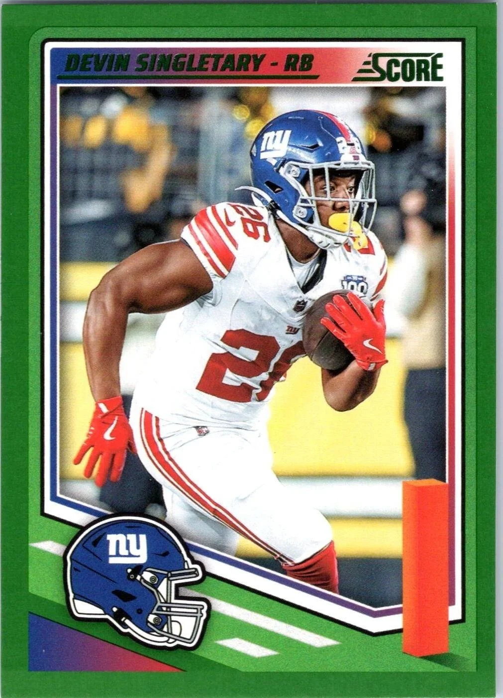 This is a nice example of a 2025 Score #234 Devin Singletary Green