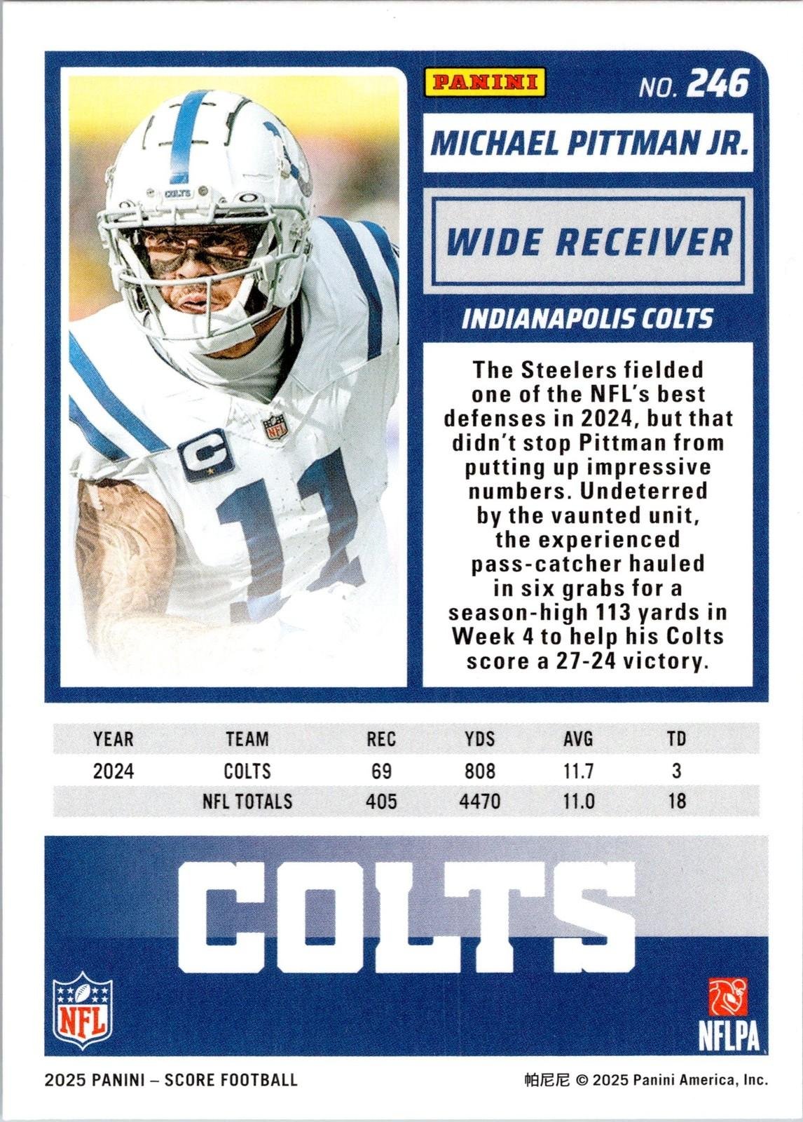 This is a nice example of a 2025 Score #246 Michael Pittman Jr.