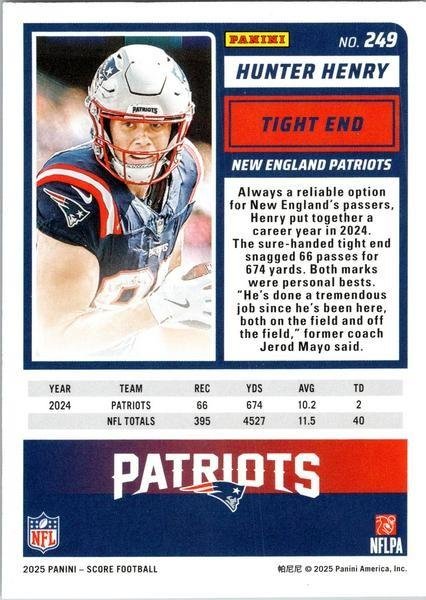 This is a nice example of a 2025 Score #249 Hunter Henry Scorecard