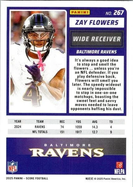 This is a nice example of a 2025 Score #267 Zay Flowers Scorecard