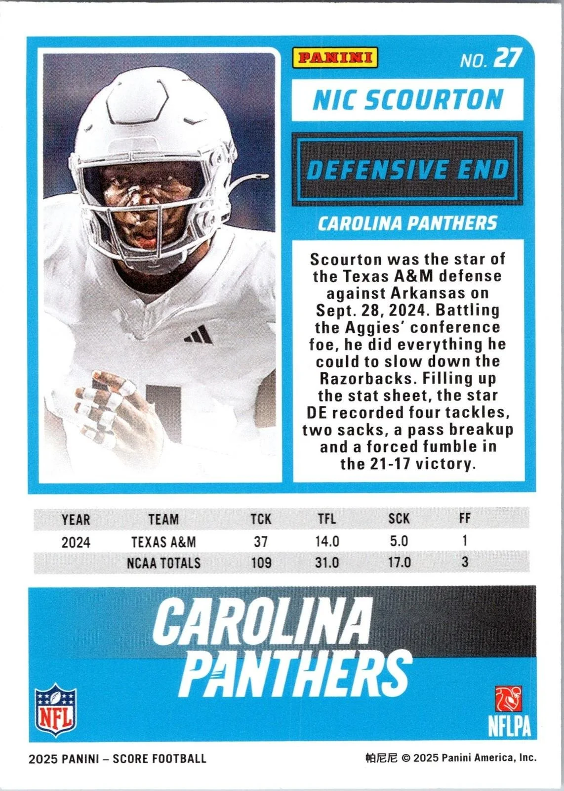 In 2025 Nic Scourton played for the Carolina Panthers.