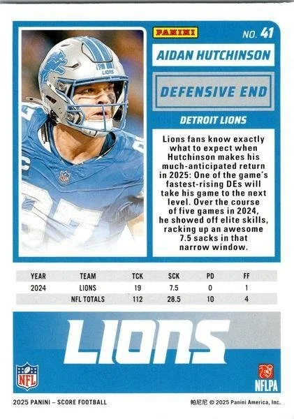 This is a nice example of a 2025 Score #41 Aidan Hutchinson Scorecard