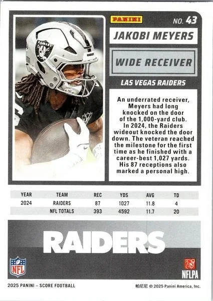 This is a nice example of a 2025 Score #43 Jakobi Meyers Scorecard