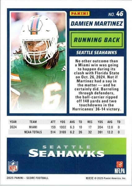 In 2025 Damien Martinez played for the Seattle Seahawks.
