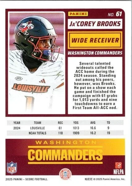 This is a nice example of a 2025 Score #61 Ja'Corey Brooks
