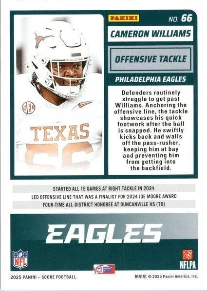 This is a nice example of a 2025 Score #66 Cameron Williams Scorecard