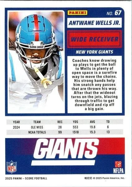 In 2025 Antwane Wells Jr. played for the New York Giants.