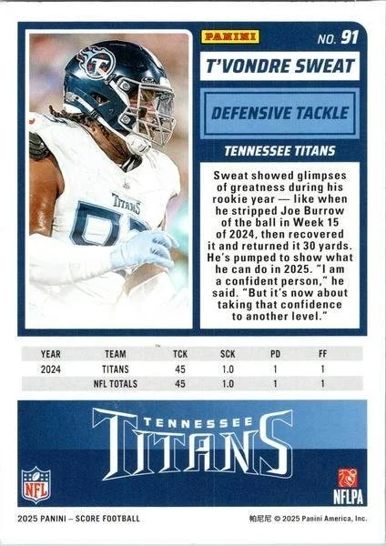 This is a nice example of a 2025 Score #91 T'Vondre Sweat Scorecard