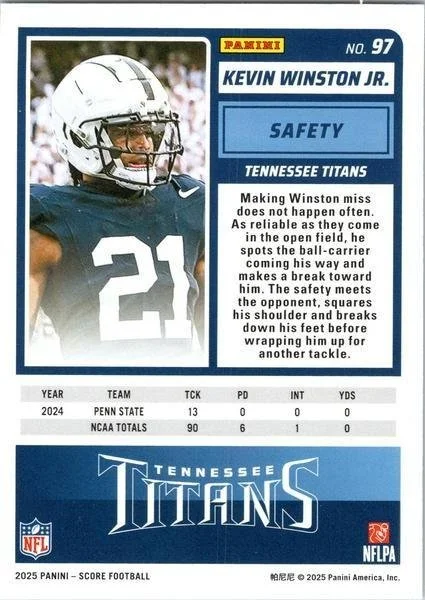 This is a nice example of a 2025 Score #97 Kevin Winston Jr. Scorecard
