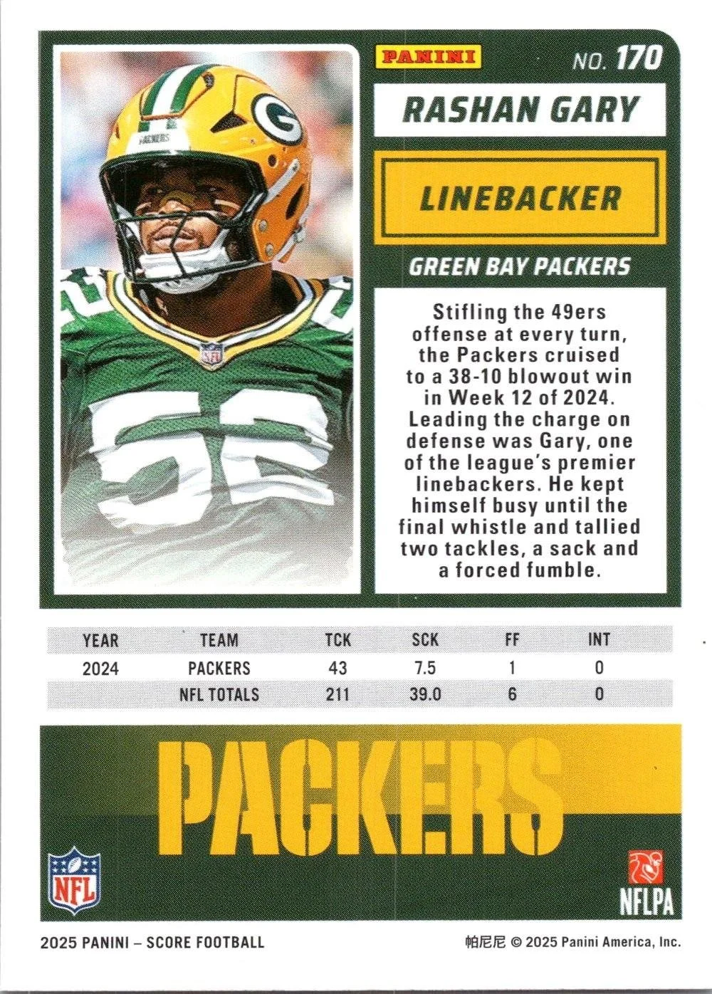 In 2025 Rashan Gary played for the Green Bay Packers.