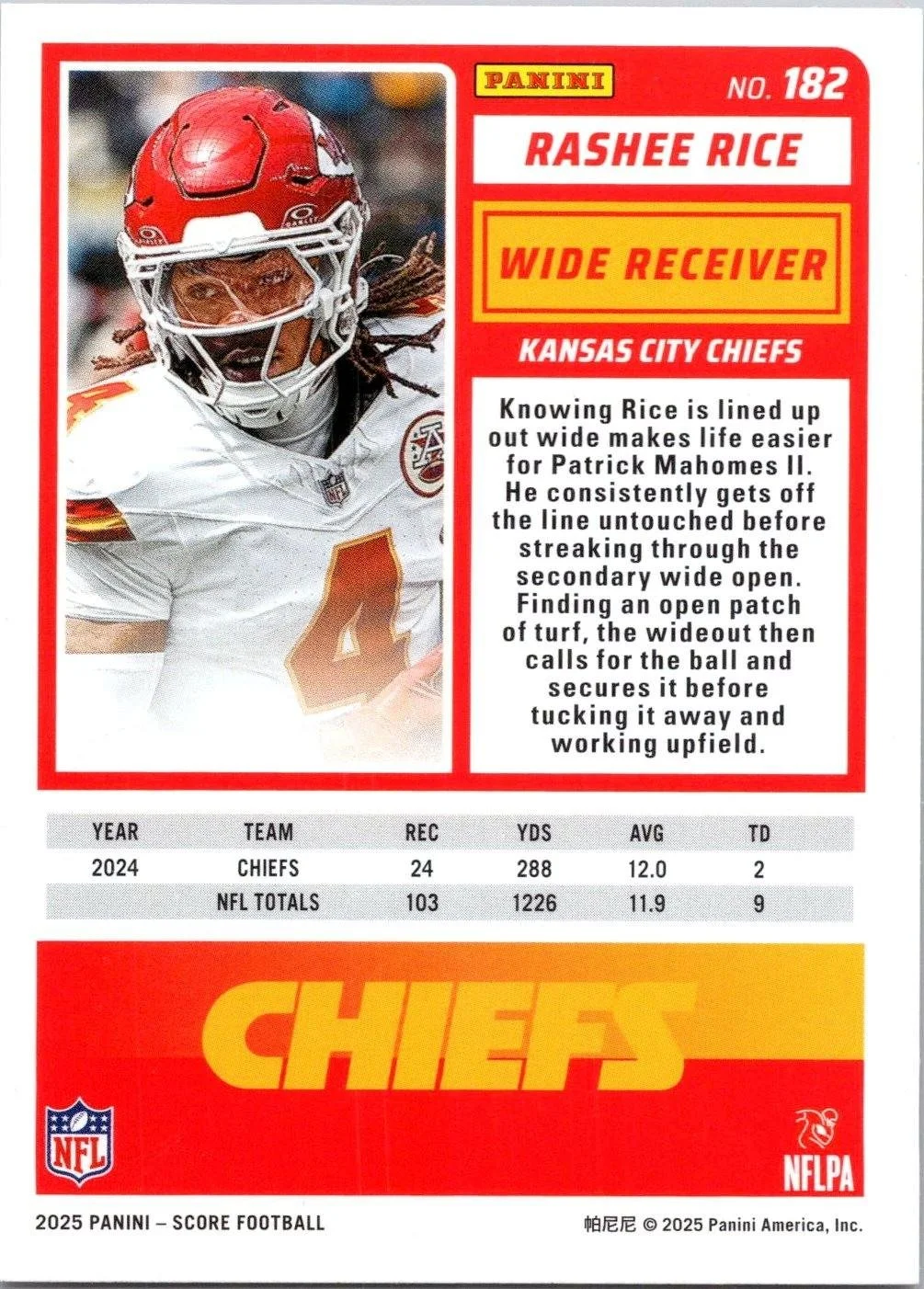 In 2025 Rashee Rice played for the Kansas City Chiefs.
