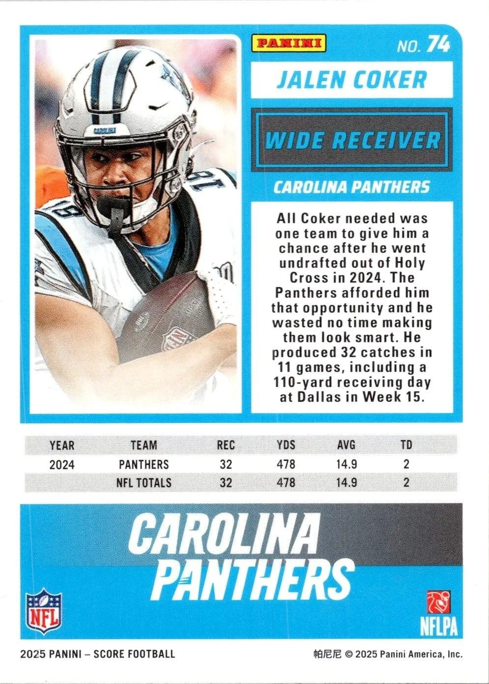 In 2025 Jalen Coker played for the Carolina Panthers.