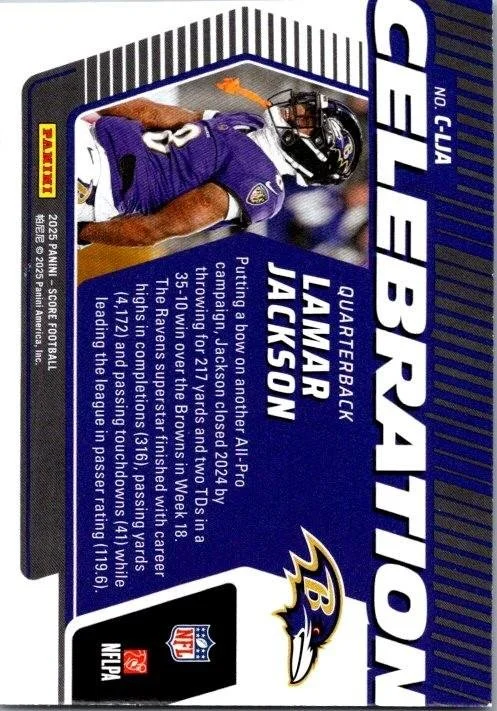 This is a nice example of a 2025 Score #C-LJA Lamar Jackson Celebration