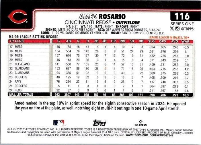 In 2025 Amed Rosario played for the Cincinnati Reds.