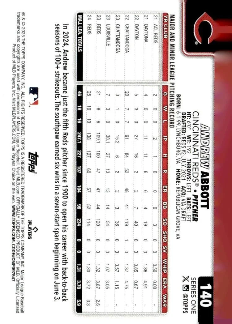 This is a nice example of a 2025 Topps #140 Andrew Abbott